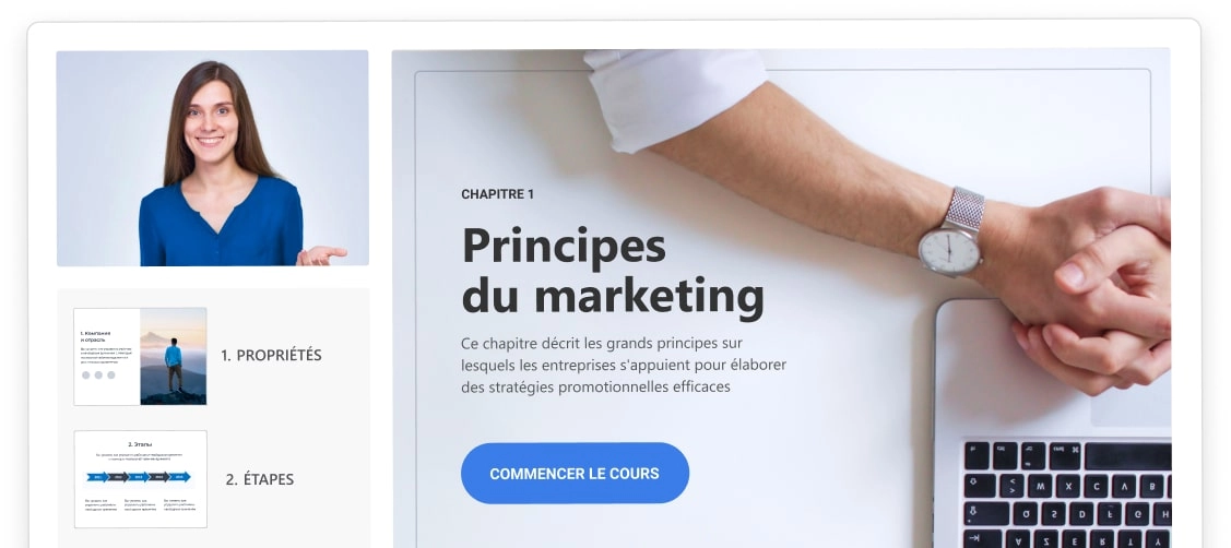 L’intérêt des modèles de présentations prêts à l’emploi est que tout est déjà là, et qu’il vous suffit d’ajouter votre contenu et d’apporter quelques modifications. Ils sont parfaits pour une création rapide et pour les personnes qui ont une expérience limitée en matière de conception graphique, mais qui souhaitent néanmoins créer un cours de qualité avec un minimum d’efforts.
