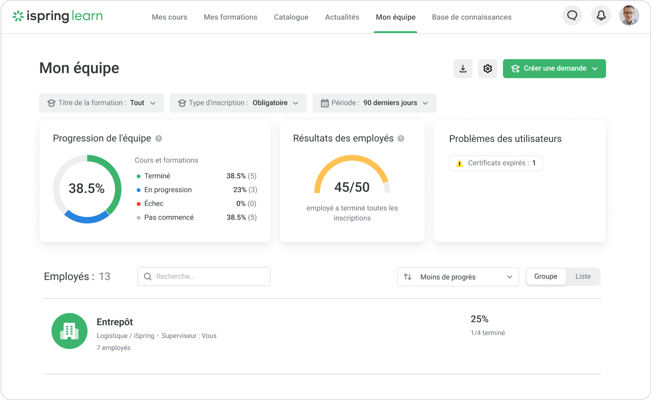 LMS pour l'évaluation de ses fonctionnalités et la détermination rapide des résultats, parfait pour les petites équipes