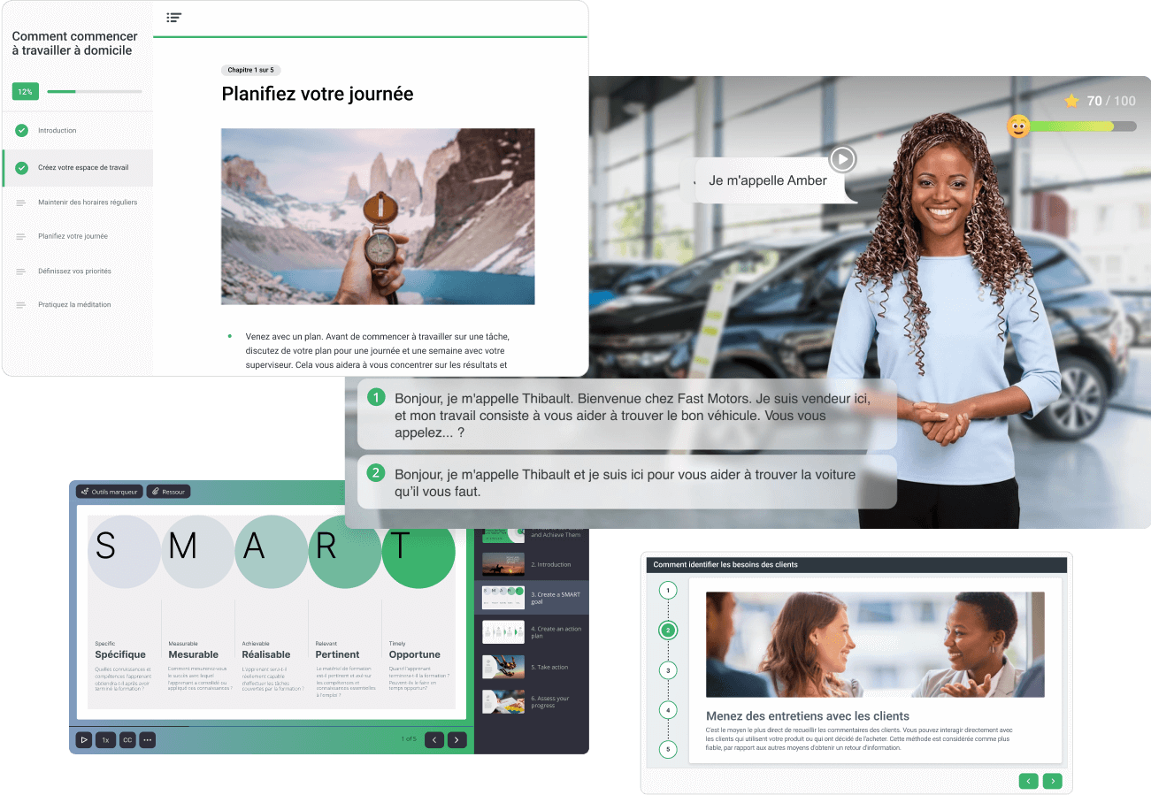 L'outil auteur intégré pour créer directement dans le LMS des guides, quiz et exercices à faire défiler